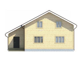Общая площадь данной модели 166 кв.м., размер – 9х12 м.. В каждом помещении предполагается установка двойных окон размером 1х1,2м и межкомнатных филенчатых дверей. Полы дома – двойные с прослойкой утеплителя (URSA/ISOVER) и гидроизолятора (ондутис R70). Конструкцию завершает двускатная крыша, выполненная из ондулина (возможен выбор цвета).