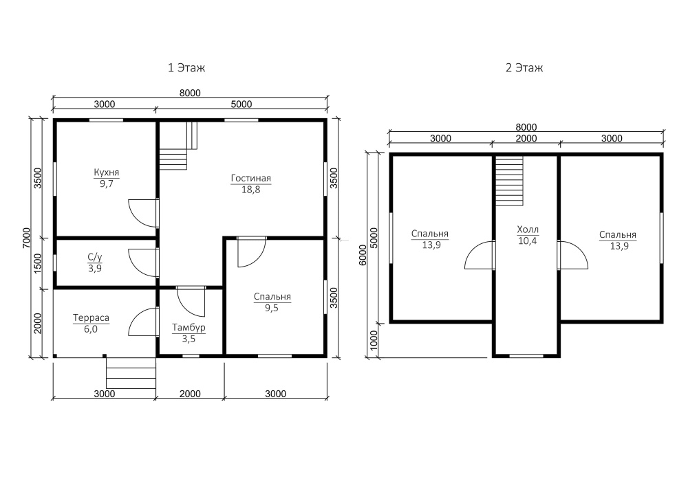 | Перегородки 2-го этажа | Каркасные: доска камерной сушки 40х100 мм, обшитые евровагонкой хвойных пород, камерной сушки, толщиной 12,5 мм. сорт «АВ» (дома с мансардой и в 1,5 этажа). Брусовые: профилированный брус камерной сушки, сечением 90х140 мм. (дома двухэтажные). | Каркасные: доска естественной влажности 40х100 мм. (дома с мансардой и в 1,5 этажа). Брусовые: профилированный брус естественной влажности, сечением 90х140 мм. (дома двухэтажные). |