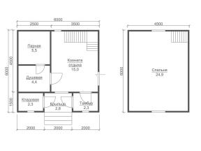 Баня с мансардой: 1-ый этаж- 2,5 м. 2-ой этаж (мансарда)- 2,3 м. Баня в полтора и два этажа: 1-ый этаж 2,5 м. 2-ой этаж 2,4 м. в полутораэтажной бане. 2,5 м. в двухэтажной бане. |