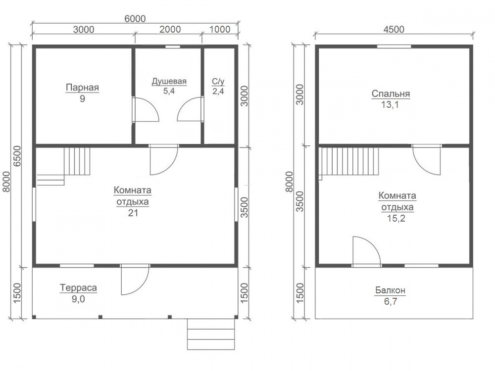 Самые популярные на данный момент размеры бань: мини - до 36м2 (как правило, 1 этажные); компактные - от 36 м2 до 70 квадратов (обычно 2-этажные); большие - от 70 кв. М и больше.