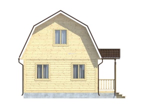 Дом встречает посетителей уютным холлом и светлыми жилыми помещениями. Продуманная планировка и зонирование помещений позволит комфортно разместиться семье или компании друзей, решивших провести выходные в окружении природы. Оригинальная двускатная выполнена из ондулина красного, коричневого или зеленого цвета.