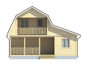 Проект 62 дачного полутораэтажного коттеджа с балконом и большой террасой выполнен в строгом соответствии с широко распространенной технологией каркасного домостроения и занимает площадь 90 кв.м. (9х9 м.).
