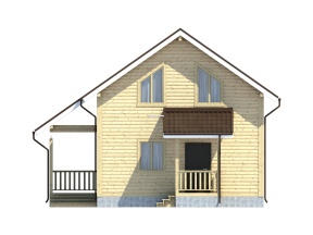 Проект 123 дачного полутораэтажного коттеджа с маленькой террасой выполнен в строгом соответствии с широко распространенной технологией каркасного домостроения и занимает площадь 109.7 кв.м. (7х9 м.).