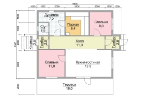 Дом встречает посетителей уютным холлом и светлыми жилыми помещениями. Продуманная планировка и зонирование помещений позволит комфортно разместиться семье или компании друзей, решивших провести выходные в окружении природы. Оригинальная двускатная выполнена из ондулина красного, коричневого или зеленого цвета.